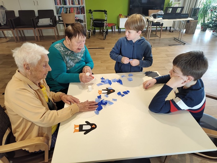 Cestujeme se zvířátky. Každou návštěvu děti s klienty hádají kvízy, skládají šifry, vyrábějí obrázky na téma zvířat. Předvánoční setkání bylo velmi emotivní a přátelské. Děti připravily pro všechny klienty přáníčka a za finanční podpory rodičů balíčky, které klientům rozdaly. Na závěr setkání jsme si společně zazpívali koledy. Jsem ráda, že u dětí se stále více rozvíjí vztah k seniorům, po každém setkání spolu mluvíme o stáří a děti se už těší na další setkání.