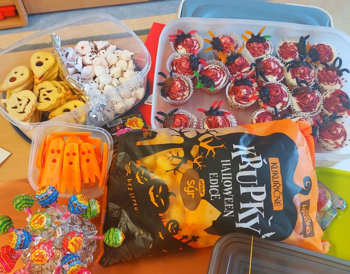 Dne 31.10. jsme měli den halloweenského učení. Výuka probíhala, ale jinak. Den nám zpestřily kostýmy a nápaditý halloweenský raut. Všem rodičům děkujeme za pomoc a spolupráci. Děti si den velice užily!