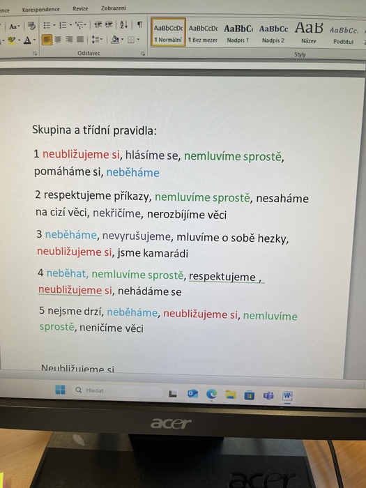 na čtyřech stejných pravidlech, která chtějí ve třídě dodržovat. V dalších hodinách se žáci zaměřili na vlastní pozitivní i negativní