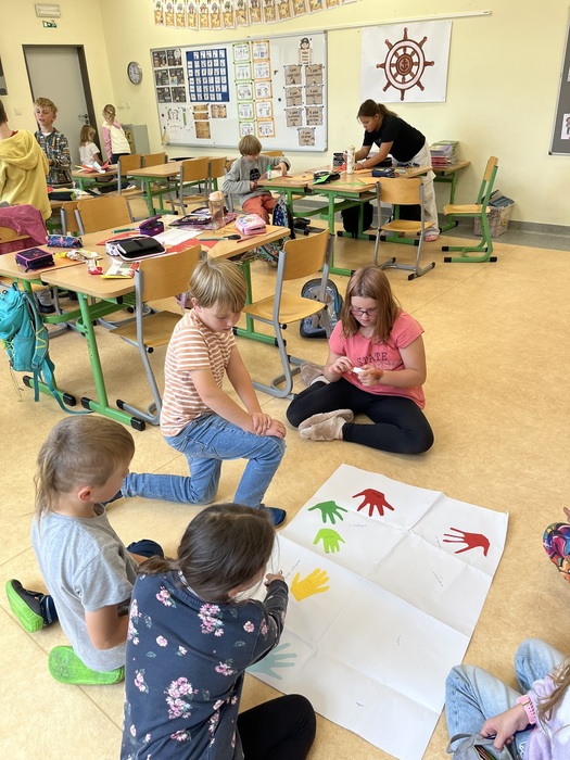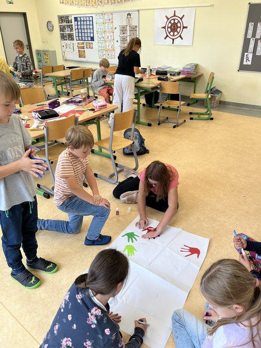 vznikl společný plakát „My a třídní pravidla“. Projektový den se vydařil, děti pracovaly s chutí a především se učily, že přátelství