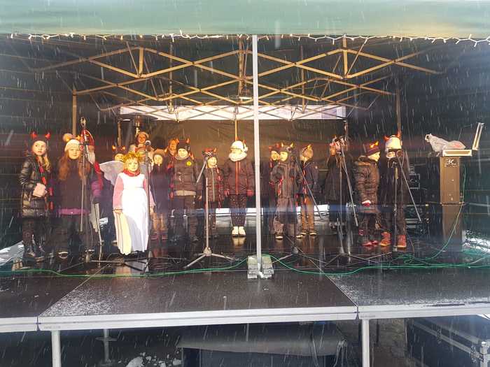 Další akce byla hned ve čtvrtek- Čertování v DDM a ve škole pak beseda s panem spisovatelem. Týden jsme ukončili návštěvou zámku s vánoční výzdobou a vystoupením děti. A na závěr dne bylo naše dlouhodobé očekáváné a trénované vystoupení při rozsvěcení stromečku na náměstí.