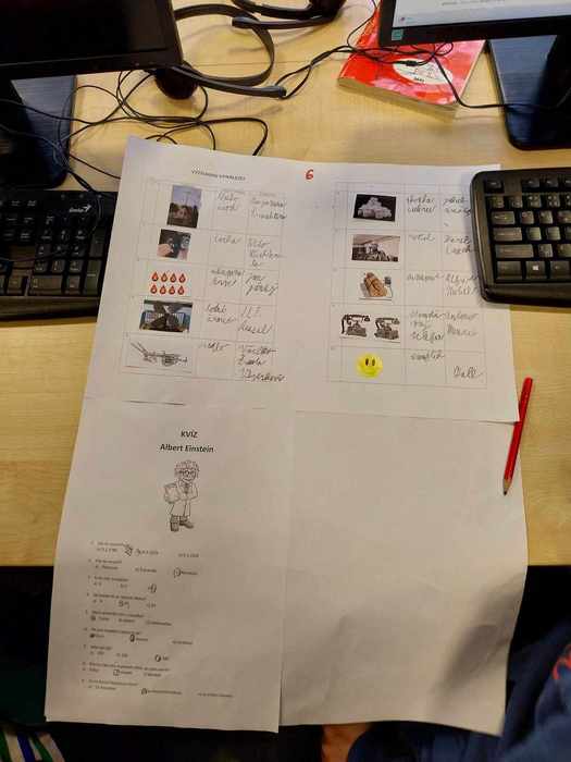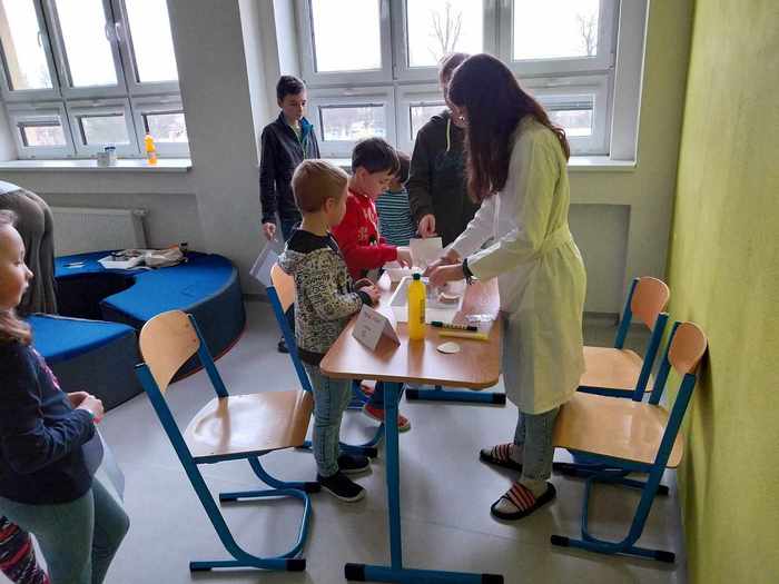 V pondělí 15.1. se žáci II.A a VII.A převtělili na mladé badatele. Tříčlenné smíšené týmy plnily úkoly na soutěžních stanovištích. Děti zaujala sopka, sloní zubní pasta, přeměna vína na vodu, barvičky a práce se sádrou. Žáci vyhledávali pomocí obrázků vynálezy a jejich vynálezce a řešili kvíz o Albertovi Einsteinovi, který nás celý den provázel.