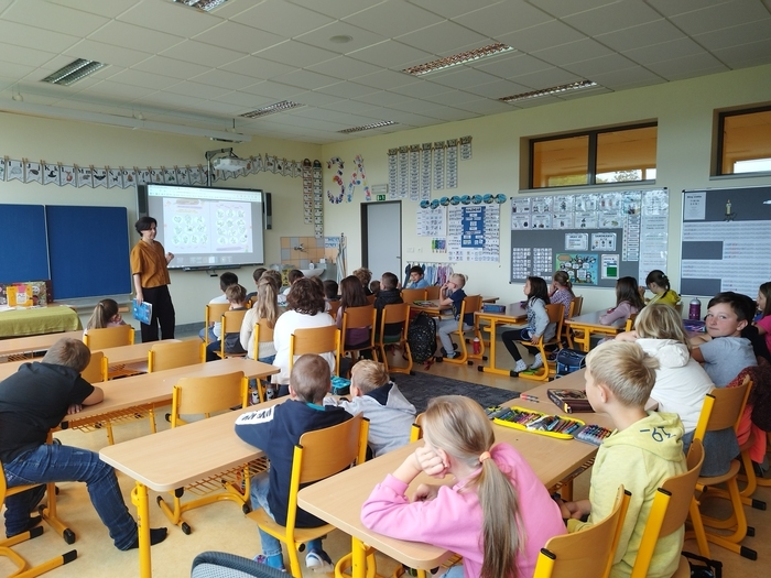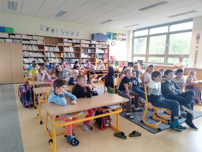 Ve čtvrtek 22. 9. navštívila naši školu paní spisovatelka Ester Stará, která zároveň pracuje jako speciální pedagog a logoped. Během besedy nám představila spoustu zajímavých knížek, prostřednictvím kterých hravým a zajímavým způsobem obohacuje a podněcuje komunikační a jazykové dovednosti mladších žáků. Žáky knihy zaujaly zajímavým zpracováním, ale i nezvyklými jmény hlavních hrdinů, kterými byli například Žvanda a Melivo, Šedík a Bubi nebo Chrochtík a Kvikalka.