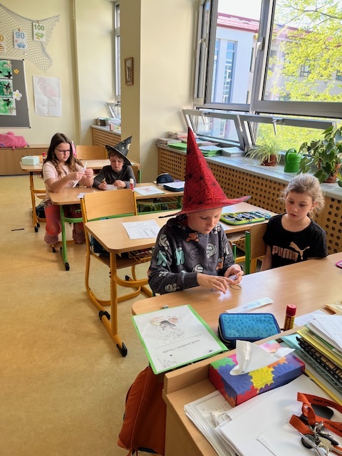Dne 30. 4. se třída žáků proměnila na třídu čarodějnic a kouzelníků. Aby během dopoledne složili čarodějnické zkoušky, museli splnit řadu úkolů - luštili, počítali, vařili kouzelné lektvary. Za odměnu pak každý kouzelník a každá čarodějnice získali letecký průkaz a sladkou odměnu.