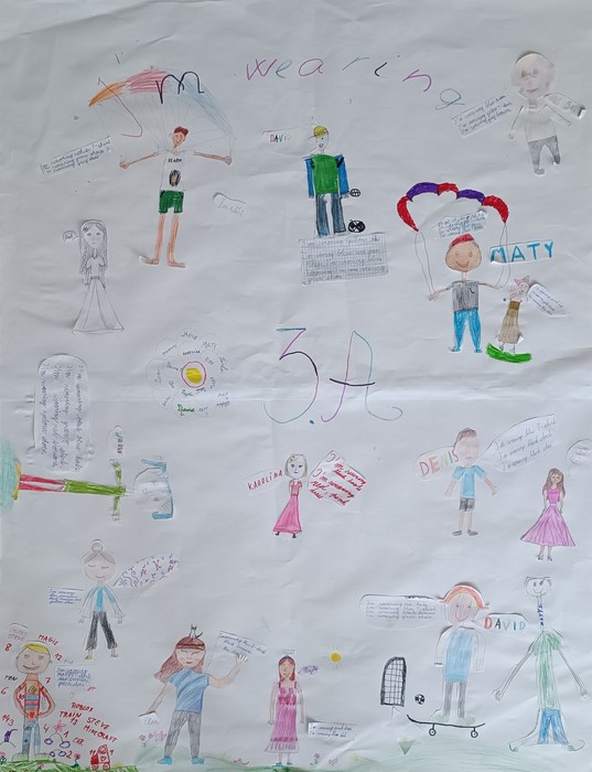 Ve třetích třídách v hodinách angličtiny jsme dokončili téma Clothes. Žáci se naučili pojmenovat základní kousky oblečení, hráli si na módní návrháře, oblékali papírové panáčky dle pokynů i podle vlastní fantazie. Závěrem tématu byl třídní projekt- Oblečení v naší třídě. Domnívám se, že zpracování se žákům velmi povedlo.