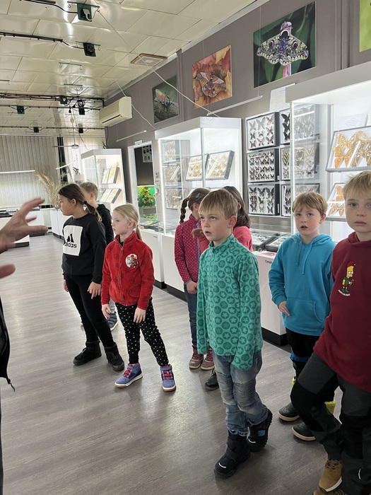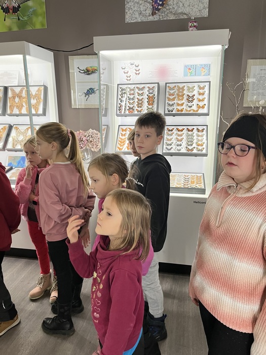 Nejprve zavítali na výstavu brouků a motýlů, kde si mohli prohlédnout největší motýly a brouky z celého světa. Na výstavě je prováděl majitel. Žáci se dozvěděli spoustu zajímavostí.