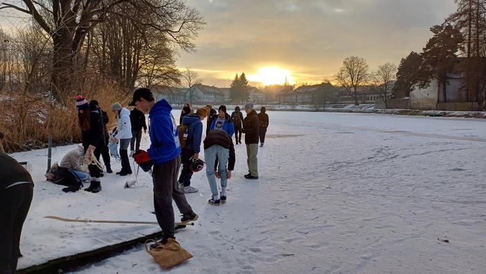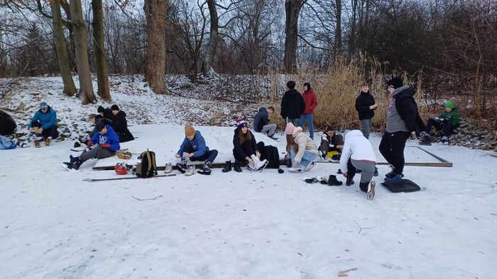 Krásné páteční ráno (24. 1. 2025) vyrazili také deváťáci na Štěpnický rybník. Chlapci odehráli napínavé hokejové utkání a dívky si užívaly bruslení kolem ostrova po upravené bruslařské dráze.