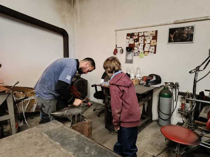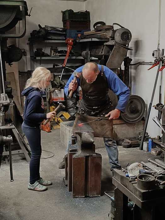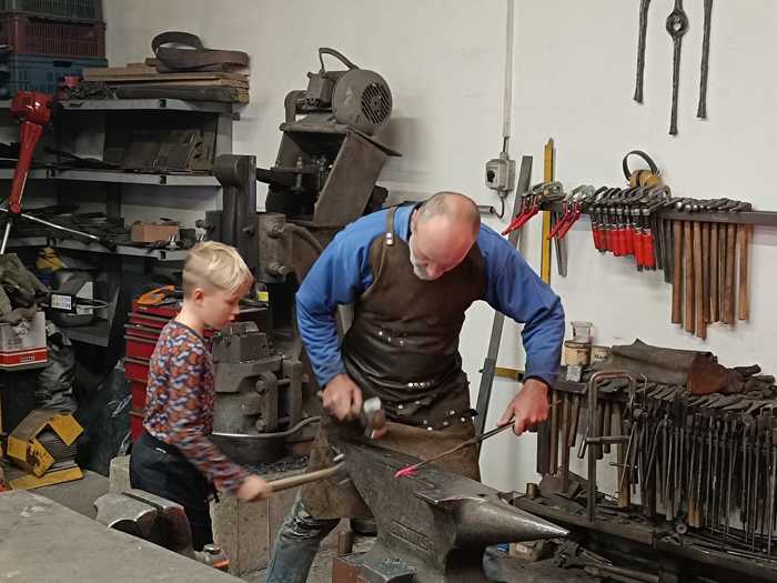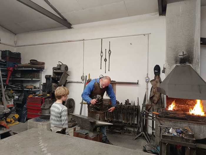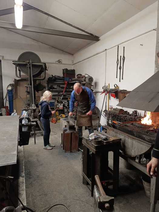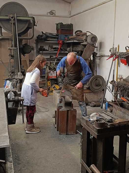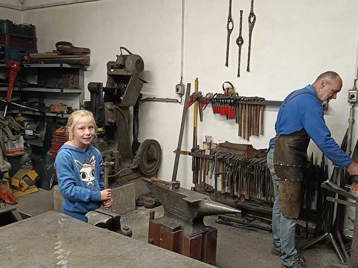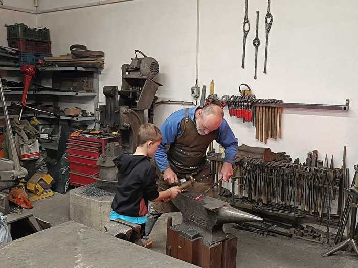 Kovář se svým pomocníkem na nás už čekal. Nejprve nám vysvětlili, jaké má nářadí a k čemu ho používá.
