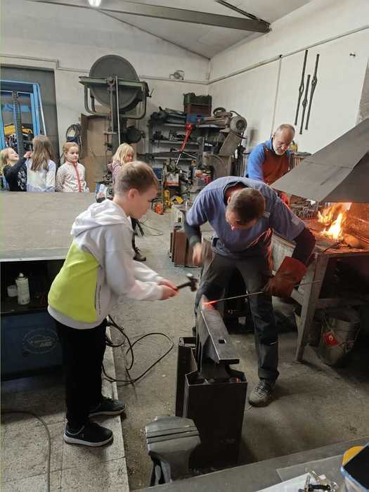Minulý týden třeťáci naší školy navštívili kováře ve Volevčicích. Vydali jsme se autobusem na rozcestí a pak jsme šli kousek pěšky do vsi.
