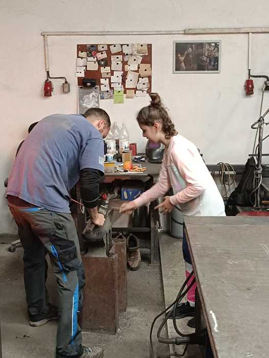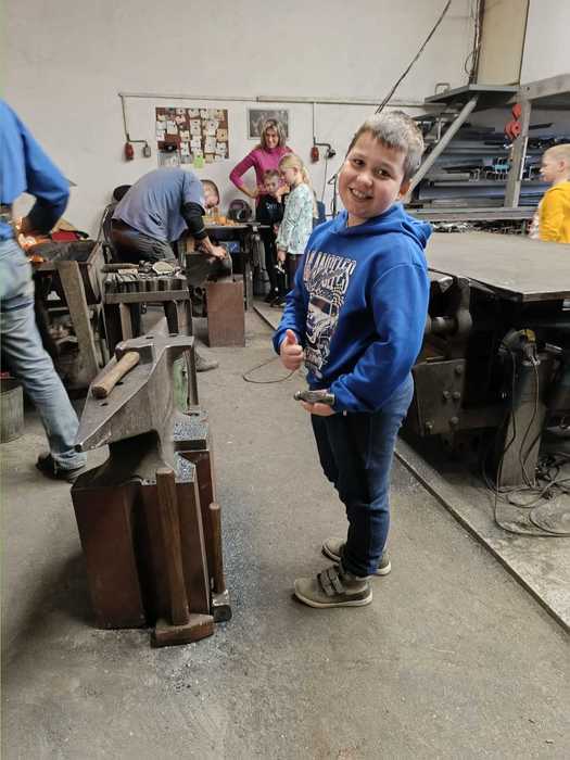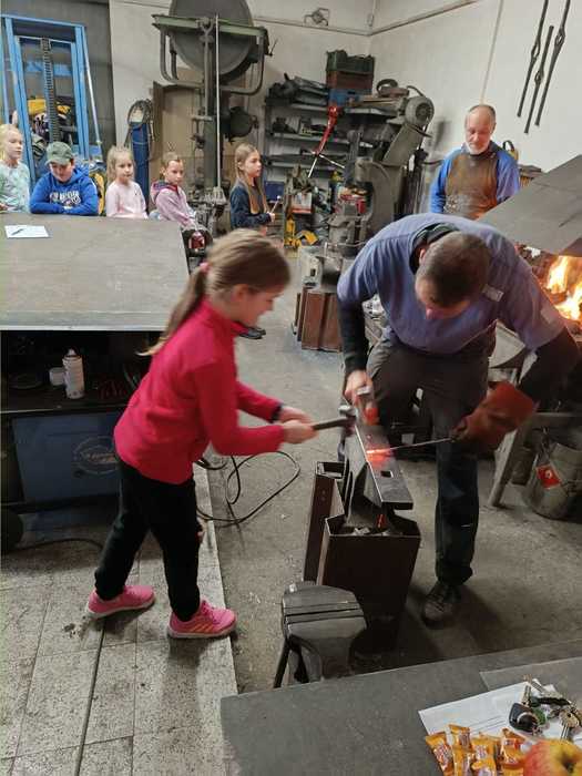 Pak si každý žák s pomocí mistra kováře vykoval lísteček. Druhý lísteček jsme dostali jako dárek.