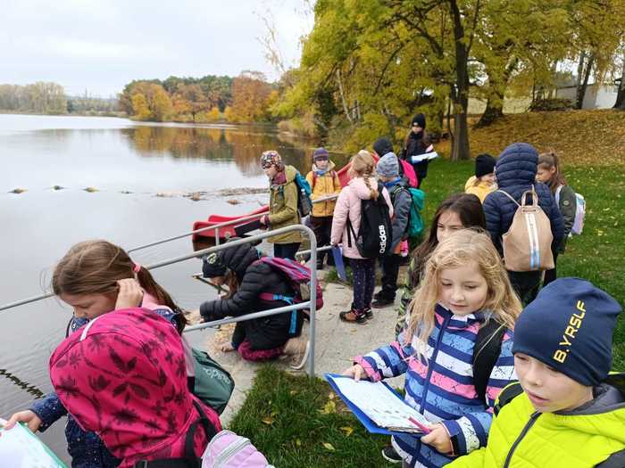 Cestou zpět jsme měli bojovku v přírodě. Hledali jsme přírodniny, navštívili jsme jeskyni zvanou Peklo, nabrali jsme vodu z rybníka Roštejna, se kterou jsme později dělali pokusy.