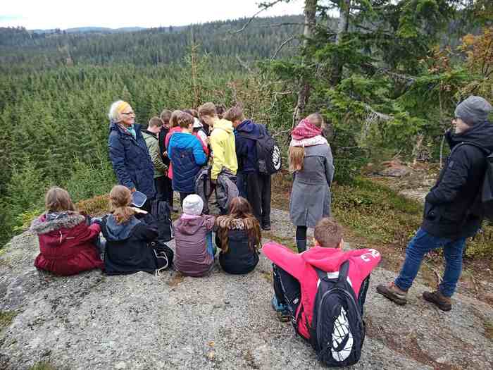 Ve čtvrtek 22. září jsme vyrazili s žáky telčských základních škol do krásného městečka Liebenau (Rakousko). Je to velmi sympatická vesnička s pár obyvateli, ale velmi moderní školou. Tam se k nám přidali naši noví rakouští kamarádi a jeli jsme do Geoparku právě poblíž Liebenau. Zde jsme strávili přibližně 3 hodiny. Rozdělili jsme se na 2 skupiny, každá chodila po rašeliništi s tlumočníkem a rodilým mluvčím. Rašelinný geopark byl opravdu veliký, kdybychom nebyli omezeni časem, určitě bychom šli větší okruh, snad příště. Když jsme všichni viděli ta velká rašeliniště, chtěli jsme se otočit, ale nakonec se nám to moc a moc líbilo. Hlavně jsme zjistili, že to může být docela sranda. Všechno to špinavé a zabahněné oblečení, boty po kotníky v blátě, byl to nezapomenutelný zážitek, spoustu smíchu a vtipných prožitků si odvážíme s sebou. Počasí nám přálo a bouřky nás obešly. Po dlouhé procházce nám vyhládlo, jeli jsme do místní restaurace, kde byl pro nás nachystán oběd. Pak jsme se vydali opět do školy v Liebenau, kde nám žáci školy zatancovali 3 povedené tanečky s jejich paní učitelkou. Bohužel jsme byli upozorněni učiteli, že už se nachýlil čas a musíme jet domů. Nasedli jsme do autobusu, který jako při většině našich školních akcí řídil pan Hefer a vyrazili domů. Celý den jsme si moc a moc užili a vyzkoušeli si, že nezáleží, kam jedeme, ale s kým tam jedeme. Už teď se těšíme na další mimoškolní akci.