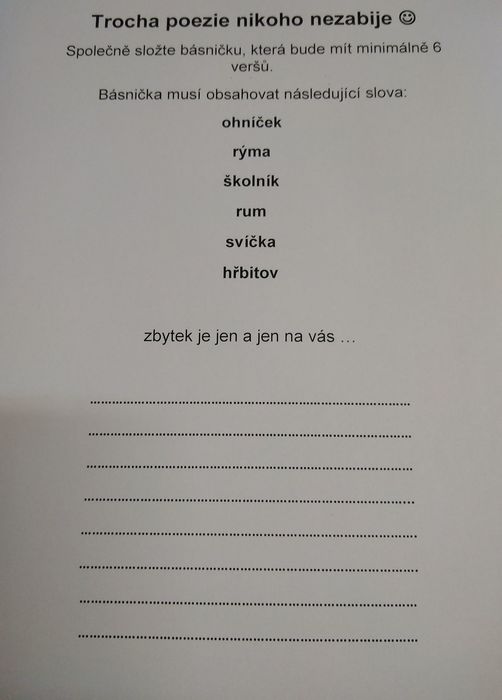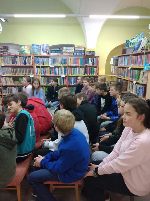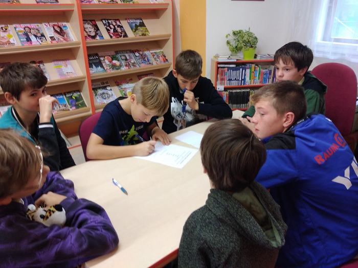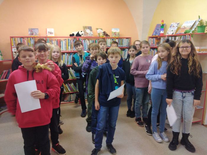 3.11. se vydala naše třída VI.B na exkurzi do knihovny. Nejdříve nás paní knihovnice seznámily s chodem knihovny, poté jsme si mohli celou knihovnu prohlédnout a půjčit si nějaké knížky. Následně jsme se rozdělili do tří týmů a soutěžili jsme v pantomimě, skládání básně a v hádání popisovaných slov. Zvítězil tým „Pejsků“ (my), ale odměnu dostaly všechny týmy. Na závěr jsme se rozloučili a šli zpět do školy. (A. Lhota, J. Novotný, VI.B)