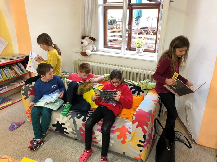Tento týden jsme navštívili knihovnu. Čekalo nás hraní se slovy, luštění, logické úkoly a tipy na čtení. Program byl jako vždy naprosto úžasný.
