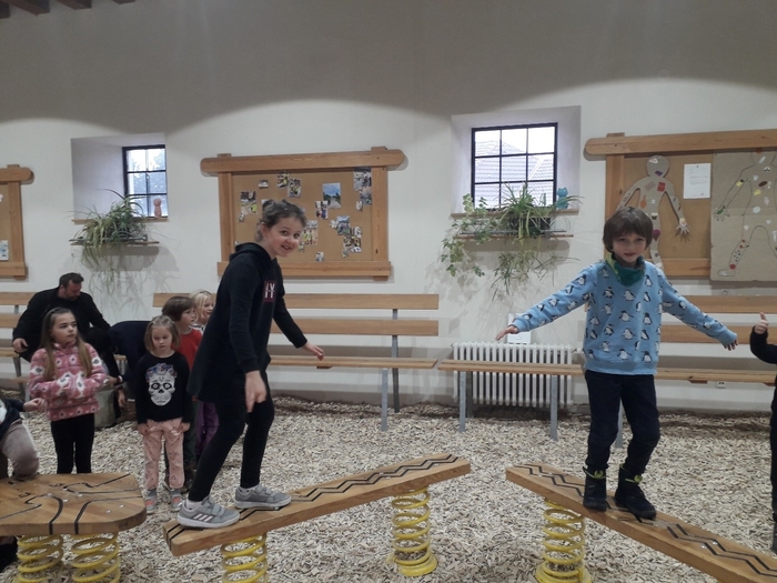 Druhou zastávkou byla hernička. Zde si děti vyzkoušely koordinaci, dřevěné překážky, prolézačky.