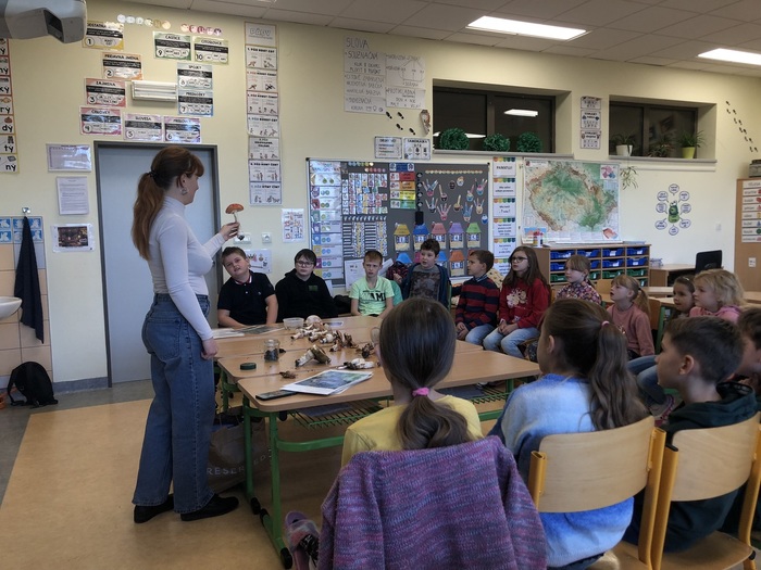 V říjnu zavítala k žákům 3. a 4. tříd mykoložka Iryna Kliestová, aby jim pověděla něco o houbách. Přednáška se jmenovala "Poznám nejen hřiby" a žáci měli možnost při ní vidět i ty houby, kterým v lese ne vždy věnujeme pozornost. Sáhli si na houby jedlé, nejedlé, i na ty jedovaté. Měli možnost pomačkat babské ucho, zjistili, že se houbami dá kreslit, nebo co všechno se dá vyrobit z choroše. Žáci se tak dozvěděli mnoho nového a vůni lesa a hub jsme si ve třídě vychutnávali ještě dlouho po skončení přednášky.