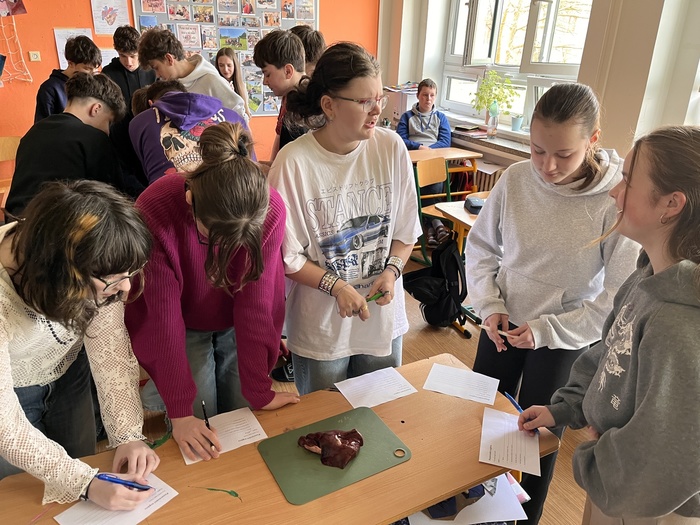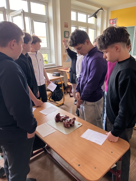 A tak si žáci důkladně prohlédli, ohmatali a ohledali vnitřek plic, srdce, jater, mozku a ledvin. Ve skupinách pak seznámili ostatní se svými