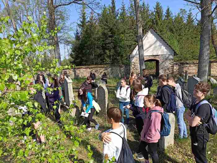 V úterý 10. května jsme se s některými žáky osmých a devátých tříd účastnili projektu Holocaust, který nám přiblížil život Židů v Telči a jejím okolí. V rámci projektu jsme se podívali na Starý židovský hřbitov, který se nachází v blízkém okolí Velkého Pěčína. A na nový židovský hřbitov, který leží hned vedle železniční zastávky Telč - Staré město. Na závěr jsme si prohlédli židovskou synagogu, která leží na telčském náměstí. Během projektového dne jsme se dozvěděli spoustu zajímavých informací o životě Židů zde v Telči a o jejich kultuře, náboženství, zvycích a osudech během druhé světové války.
