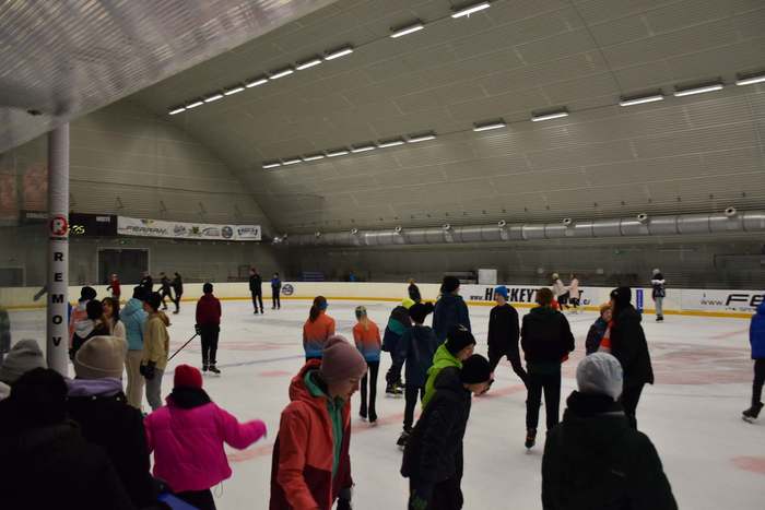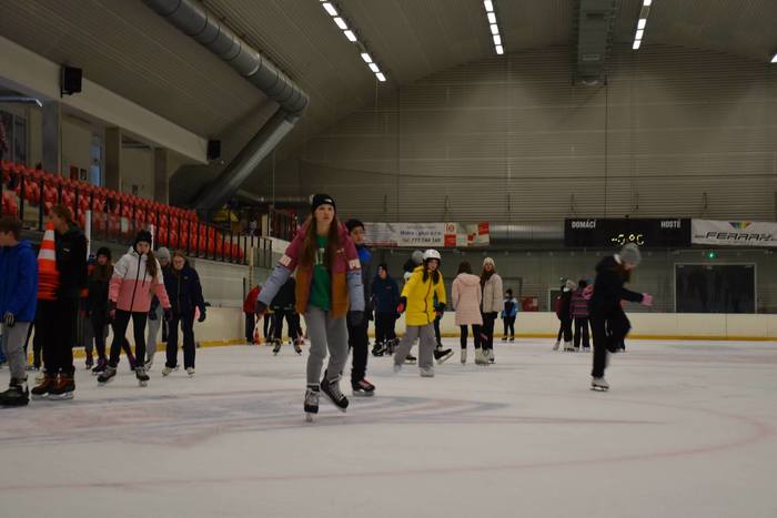 Ve středu 29. března jsme se sešli na zimním stadionu, abychom využili zdejší prostory k zdokonalení bruslařských dovedností žáků druhého stupně. Sešli jsme se hned ráno před stadionem, kde jsme si vysvětlili program dne a zopakovali si zásady bezpečného chování na ledě.