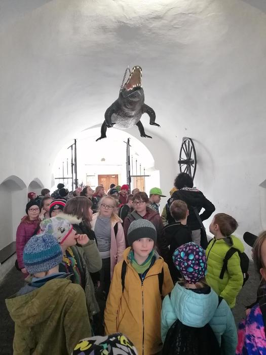 Přemístili jsme se na starou brněnskou radnici, abychom viděli brněnského draka a dřevěné kolo. Oba předměty obklopují pověsti, se kterými jsme se seznámili.