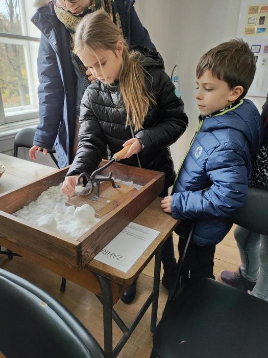 Na malém modelu nám paní průvodkyně vysvětlila celý proces výroby od řepy cukrovky až po homoli cukru. Viděli jsme staré formy na homole, sekáčky a kleště na jejich štípání. Poslechli jsme si také příběh o paní Radové, který vedl k nápadu výroby cukru ve formě kostek.