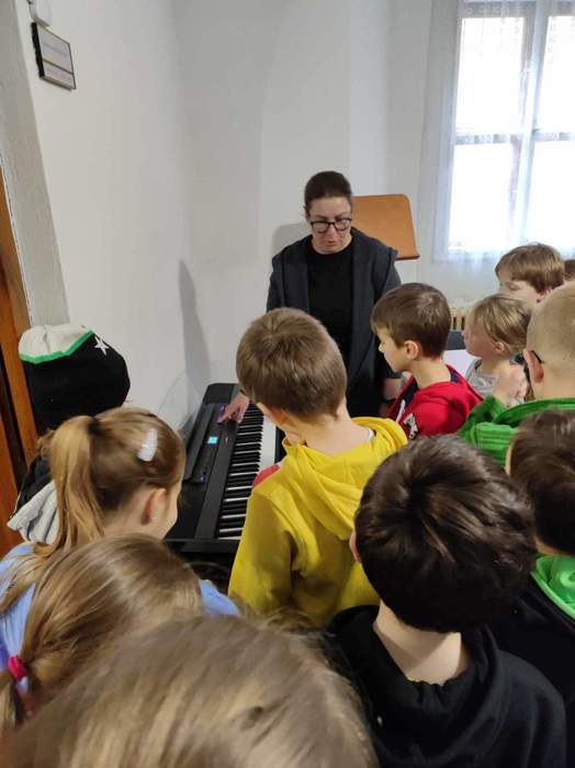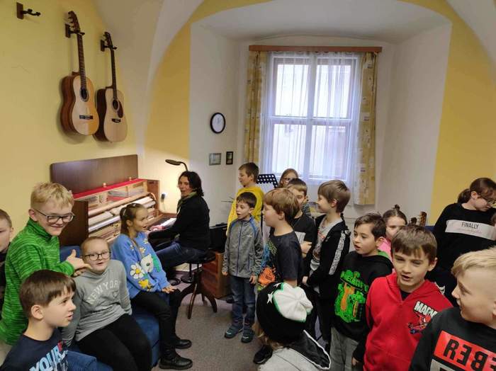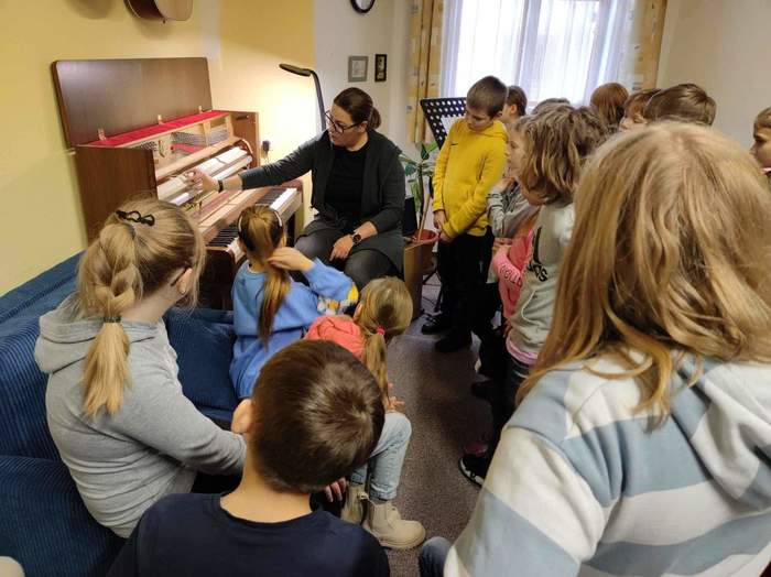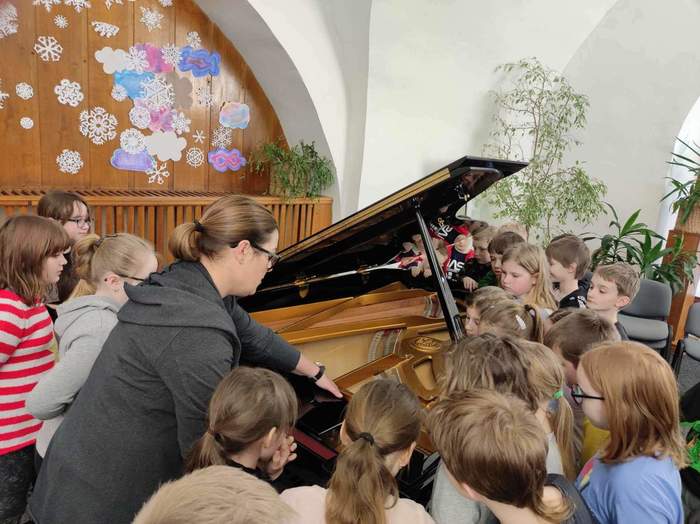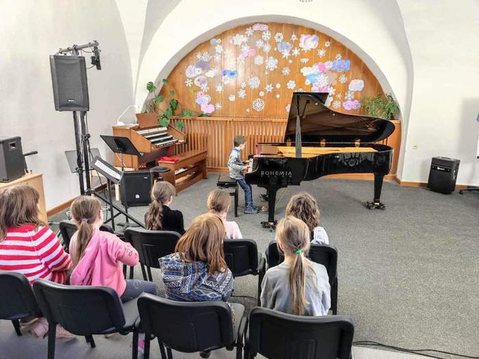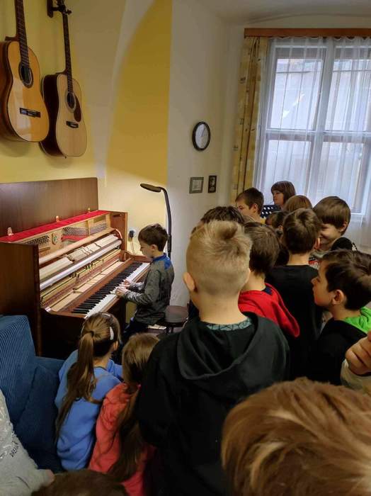 Na začátku března se třída III. A již podruhé vydala do telčské ZUŠ, aby se seznámila s dalšími hudebními nástroji. Po minulém setkání s harfou to byly tentokrát nástroje klávesové – klavír, pianino a digitální piano. Paní učitelka Kolaříková dětem ukázala, jak nástroje vypadají uvnitř, jak mají uložené struny, kolik mají kláves, k čemu slouží jednotlivé pedály. A protože máme ve třídě šikovného klavíristu Martínka Štrejbara, mohli jsme si v jeho podání vyslechnout hned několik skladeb. Společná písnička Okolo Frýdku udělala tečku za dalším poutavým setkáním s hudbou.