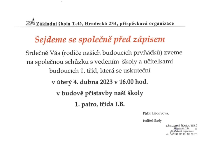 Srdečně Vás (rodiče našich budoucích prvňáčků) zveme