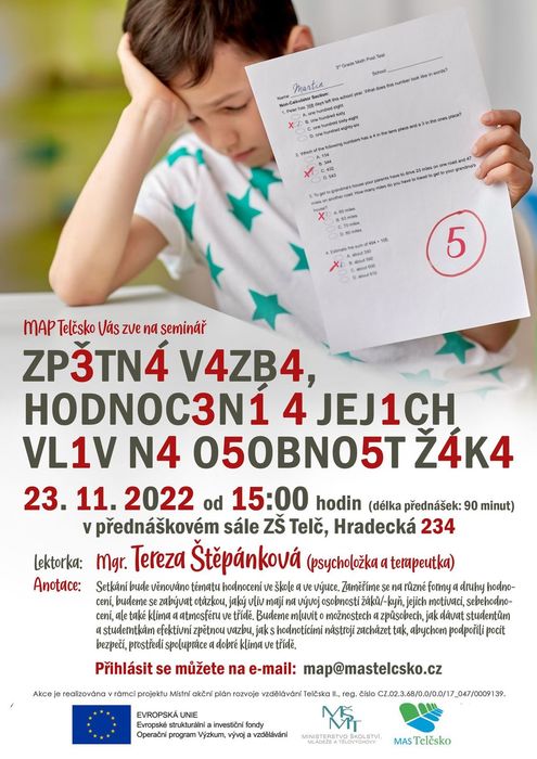 Setkání bude věnováno hodnocení ve škole. Zaměříme se na různé formy a druhy hodnocení, budeme se zabývat otázkou, jaký mají vliv na vývoj osobnosti žáků/-kyň, jejich motivaci, sebehodnocení, ale také klima a atmosféru ve třídě. Budeme mluvit o možnostech a způsobech, jak dávat studentům a studentkám efektivní zpětnou vazbu, jak s hodnotícími nástroji zacházet tak, abychom podpořili pocit bezpečí, prostředí spolupráce a dobré klima ve třídě.